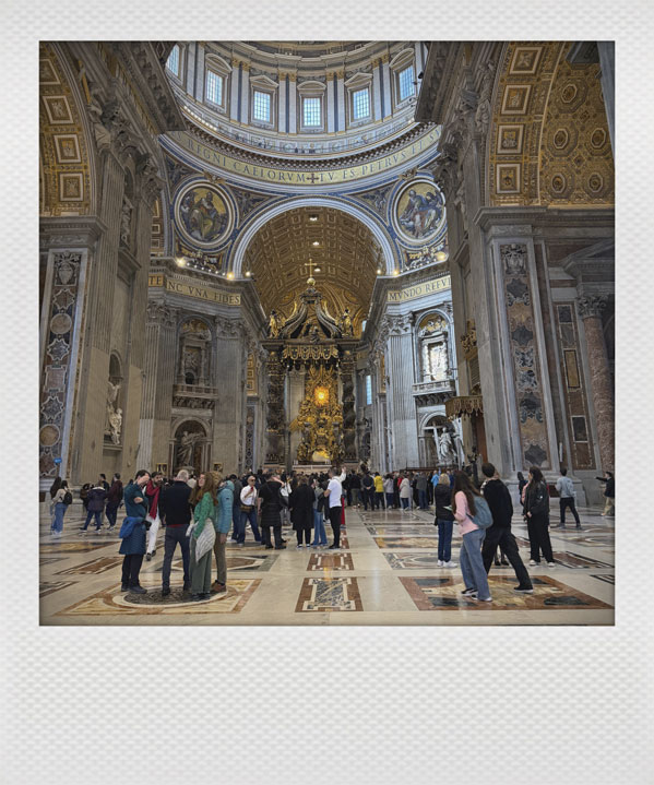 Fazit des Tages: Viel gesehen, viel gestaunt, und ein bisschen näher an der Frage, ob meine Schrittzähler-App auch Heiligsprechung verdient hat. Der nächste Tag stand zur freien Verfügung, der ebenfalls göttlich war, denn wir wollten zur Papstaudienz! Aber davon später mehr.