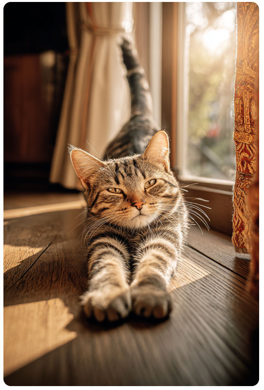 Später bestätigten auch Verhaltensforscher: Dieses Räckeln ist nicht nur ein Dehnen der Muskeln. Es ist oft ein Zeichen von Vertrauen und gleichzeitig eine Art Einladung. Eine Katze, die sich so zeigt, signalisiert: „Ich fühle mich sicher genug, mich ganz groß zu machen. Und genau das berührt Menschen sofort.