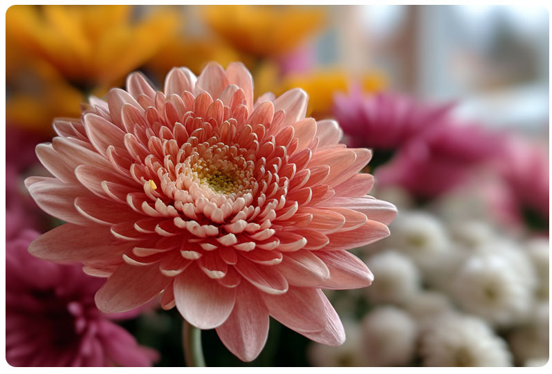 Chrysanthemen sind wie kleine Sonnen, die den Herbst noch einmal hell erstrahlen lassen. Ihre Blüten können schlicht und zart sein oder dicht gefüllt wie kleine Bälle, und sie zeigen sich in allen Farben – von strahlendem Weiß über warmes Gelb und Orange bis hin zu kräftigem Rot und Violett. Sie wirken, als würden sie trotz der kühlen Tage die Wärme festhalten und in die Welt hinaustragen.