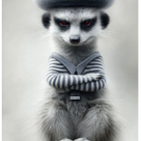 Neben einer "riesigen Kirsche", die völlig unangemessen fröhlich rot glänzte, stand ein Erdmännchen-Weibchen. Auf dem Kopf trug sie einen "Strohhut mit Blumen", als hätte sie ihn nur angezogen, um sich noch entschlossener gegen gute Laune zu wehren.
